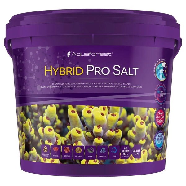 The resulting Hybrid Pro Salt formula creates conditions almost identical to those found in natural seawater while having the added benefit of probiotics to help maintain microbiological balance, which safely lowers nitrate and phosphate levels.